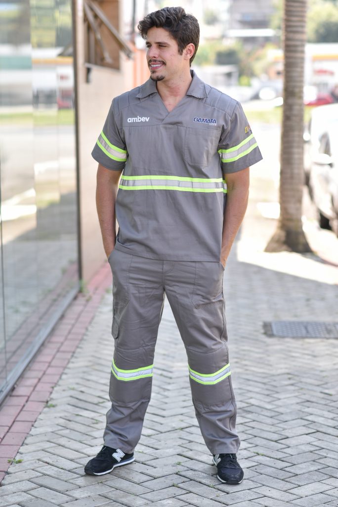 No setor industrial podem ser utilizados uniformes operacionais, quando há exposição de risco, ou ainda peças despojadas e confortáveis. Como é o caso da calça personalizada com opção de múltiplos bolsos, que combina com a rotina profissional e reforça a identidade da marca.